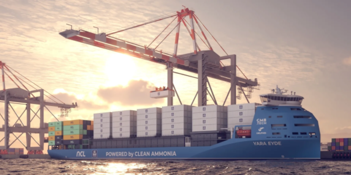 Yara Clean Ammonia、 North Sea ContainerLine和Yaralnternational與CMB.TECH公司合作,訂購了全球首艘氨動力集裝箱船“YaraEyde”號。