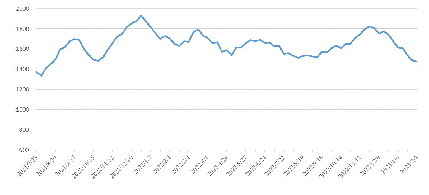 東北區(qū)域:春節(jié)節(jié)后第一周,貨主貨量乘生產(chǎn)生成緩慢,市場運力恢復(fù)速度快,導(dǎo)致短期供需不平衡加劇。本期東北指數(shù)報收1396點,環(huán)比下跌87點,跌幅5.87%,其中東北至華南指數(shù)報收1245點,環(huán)比下跌175點,跌幅12.32%。